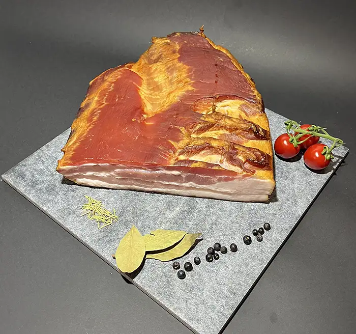 Ez a szalonna különleges gondossággal készül, figyelembe véve minden részletet. A hús kiváló minőségű, és finom fűszerekkel, sóval és egyéb természetes ízesítőkkel gazdagítják, hogy elérjék a tökéletes harmóniát. A kolozsvári szalonna lassan füstölik, ami egyedülálló ízvilágot kölcsönöz neki, és garantálja a magas minőséget.